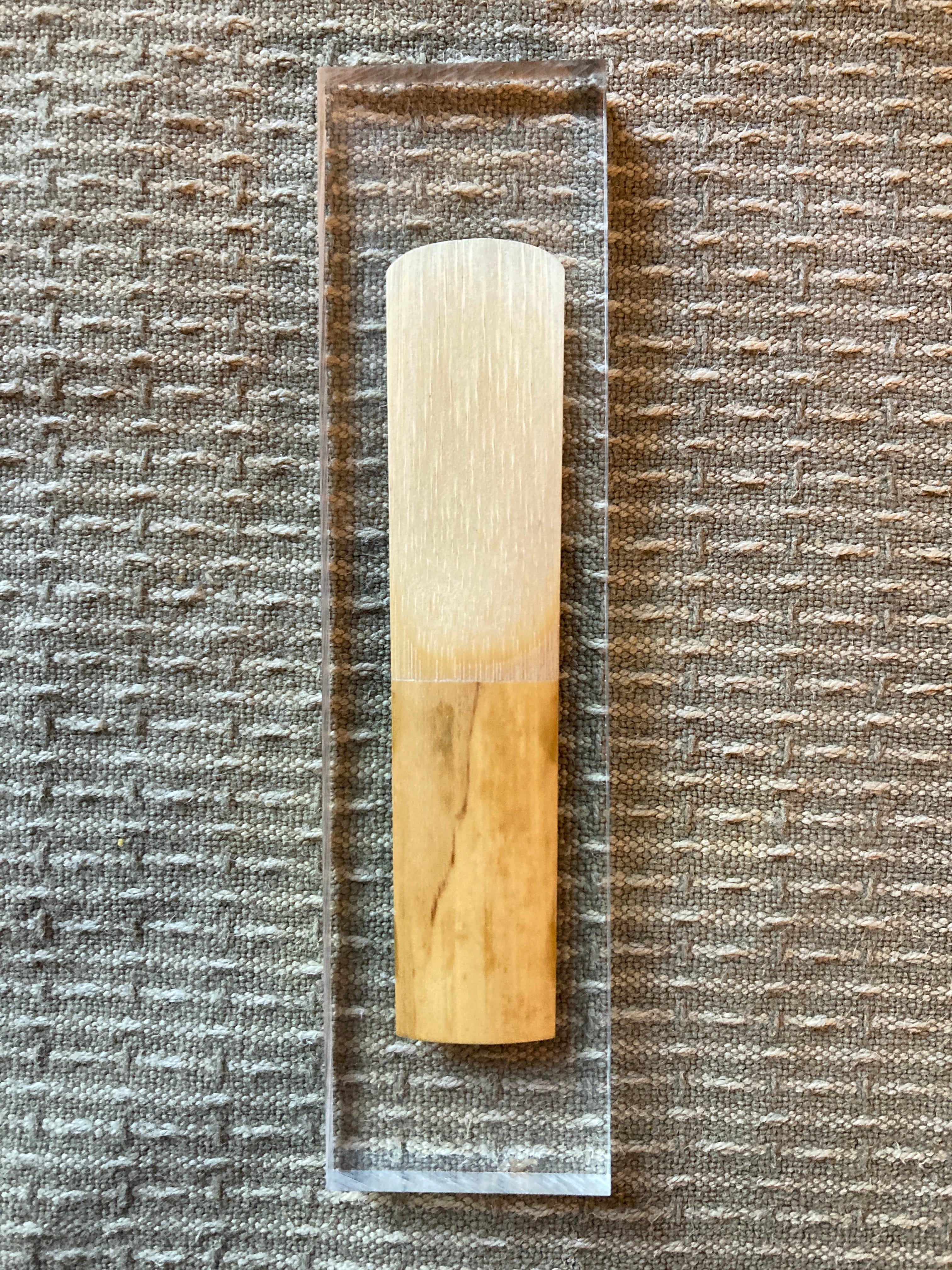 With a new reed, we want to flatten the back before playing. This can be accomplished simply with a sheet of regular printing paper, it has enough texture to accomplish the task. Take the paper and put it on a flat surface. Feel the bottom of the entire reed, it will probably have a slight roughness and feel not entirely smooth. Now take the reed and move it back and forth on the paper in the direction back to tip with light pressure. Feel the reed again and you should notice that it feels very smooth. You are ready to play. You can also do this very well with a reed tool, although I recommend using paper first to see how it goes. There are several reed tools on the market, and the tool will also assist with adjustments on the cut of the reed when necessary. If using a reed tool or knife, make adjustments very, very gently. A little does a lot. On the back of the reed I am hesitant to use sandpaper or polishing cloths, I find that they do too much, even the very fine grain ones (although they can be useful with adjustments on the vamp.)